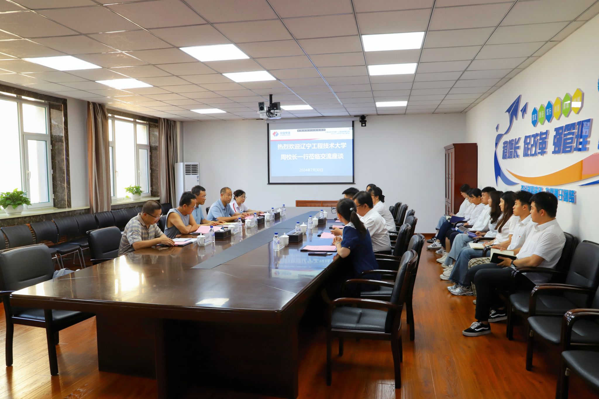 7月30日,我校党委常委、副校长周天然带队到长春市中电建水电一局东原工程有限责任公司考察,我校校友、公司党委书记、执行董事、总经理张大鹏热情接待了周天然一行并主持座谈。