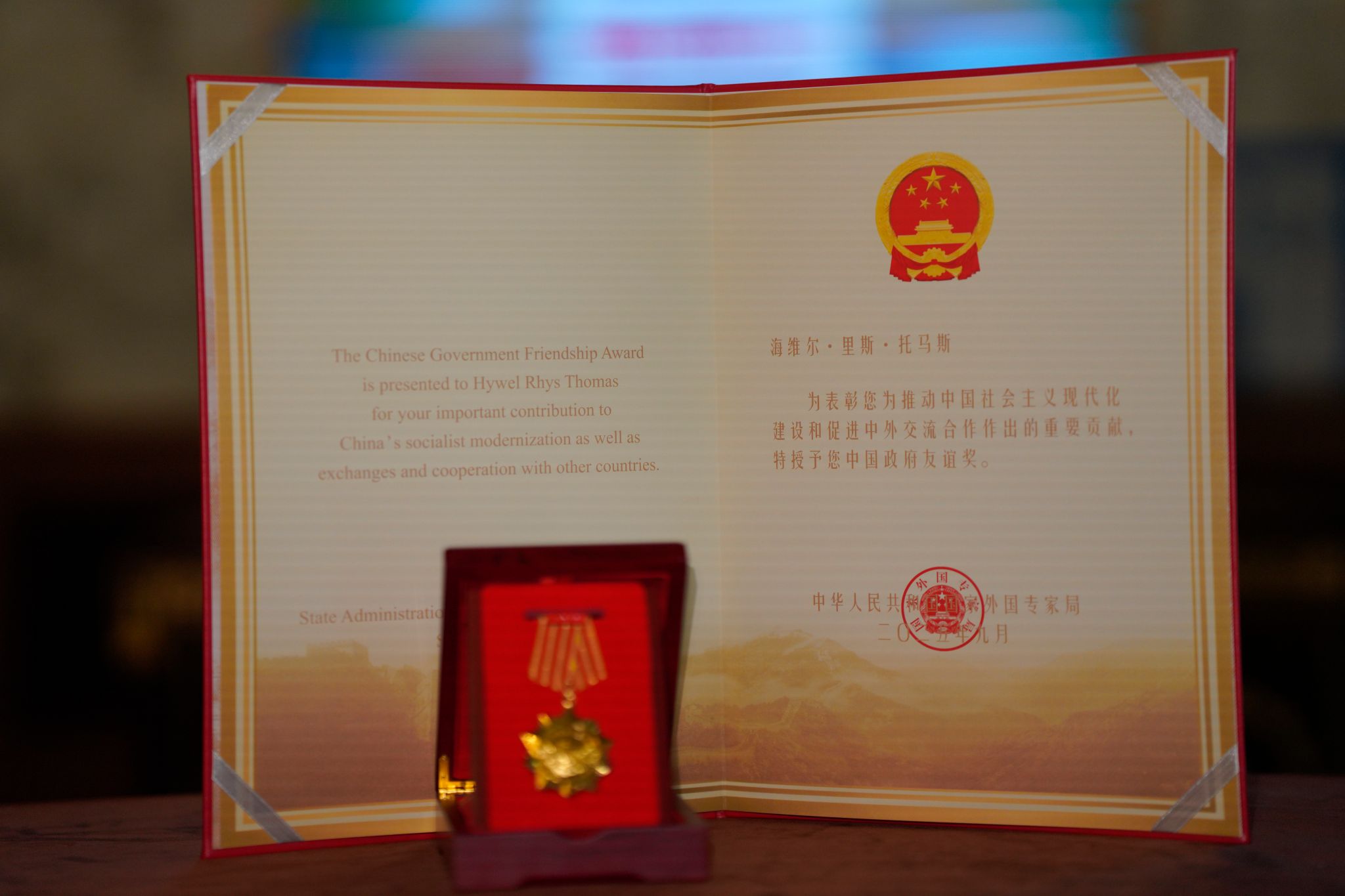 我校特聘教授海维尔·里斯·托马斯(Hywel R. Thomas)院士获颁中国政府友谊奖
