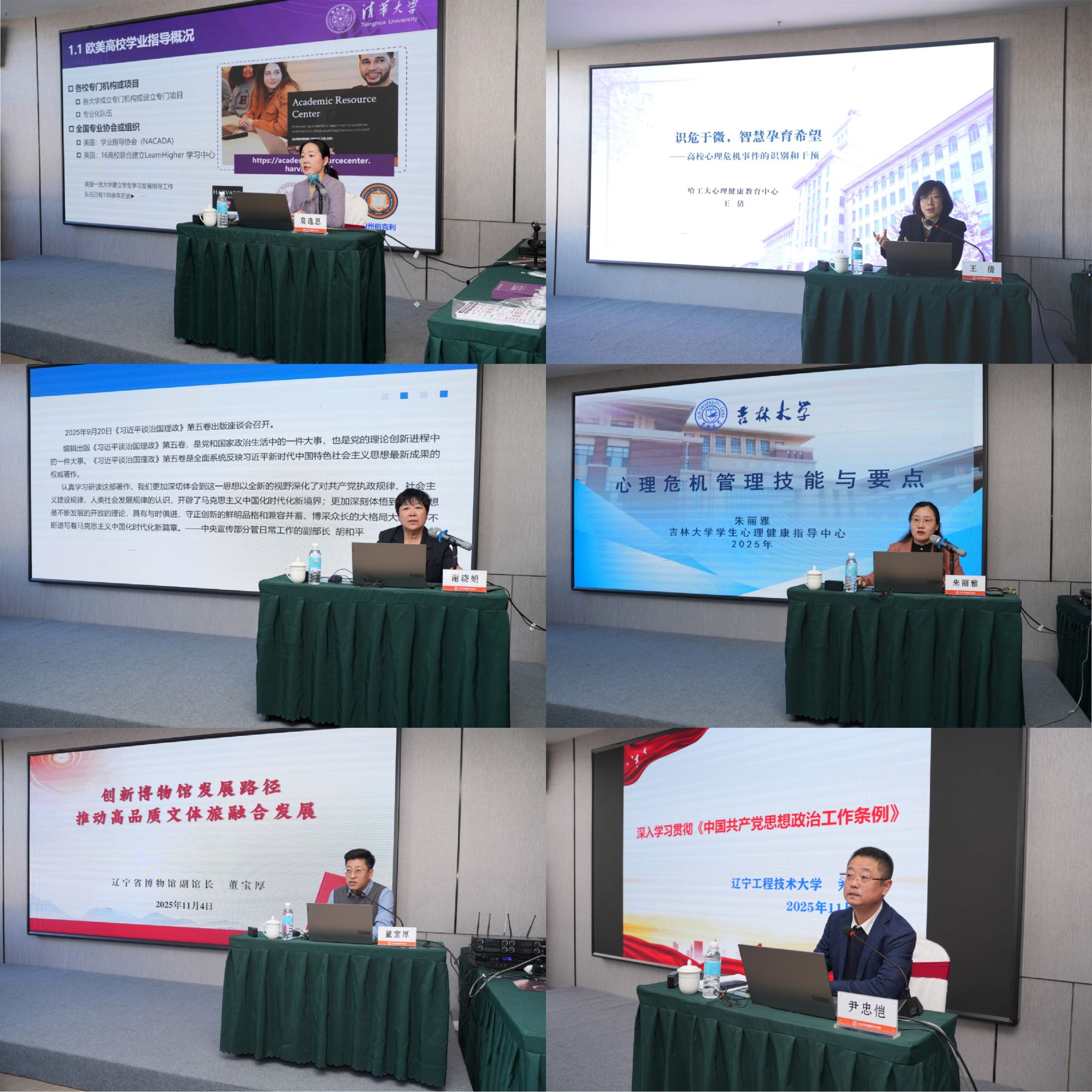 培训期间,邀请到清华大学学生学习与发展中心詹逸思主任,哈尔滨工业大学心理健康教育中心主任王倩教授,辽宁大学马克思主义学院院长谢晓娟教授,吉林大学学生心理健康指导中心主任朱丽雅教授,辽宁省博物馆副馆长、研究馆员董宝厚,校党委常委、宣传部部长尹忠恺教授等10余位省内外专家作专题辅导报告。