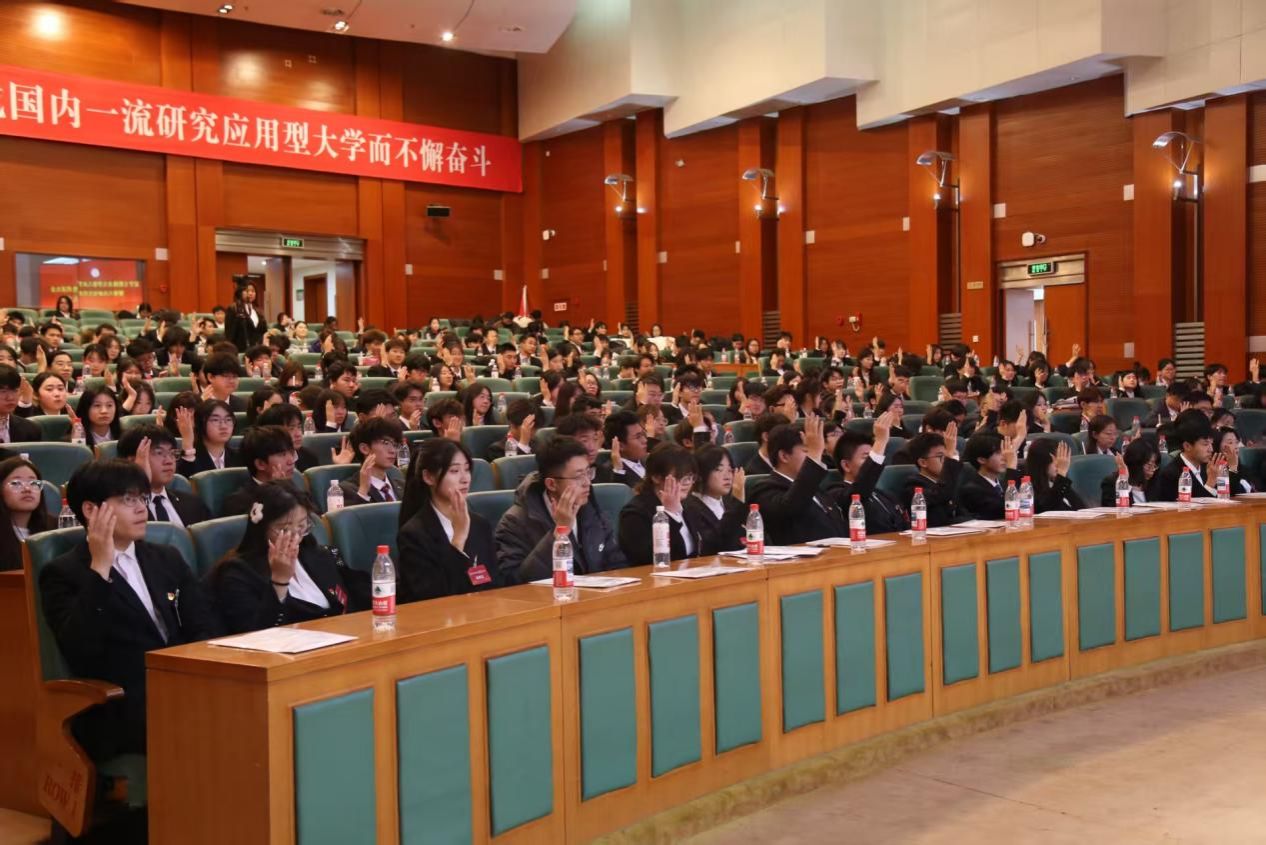 大会在庄严的国歌声中正式拉开帷幕。付海波代表学校向大会的召开表示祝贺,向全体代表和全校青年学生致以亲切的问候,对学生会、研究生会过去一年在强化思想引领、深化服务青年、推动“五育并举”等方面取得的工作成效给予充分肯定,并对学校各级学生会、研究生会和青年学生提出三点希望:一是筑牢思想根基,强化价值引领;二是聚焦成长赋能,坚持守正创新;三是完善服务体系,提升工作效能。要求新一届学生会、研究生会要以更加昂扬的精神、务实的作风、切实的行动,团结凝聚全校青年学生,奋力书写为中国式现代化挺膺担当的青春篇章。