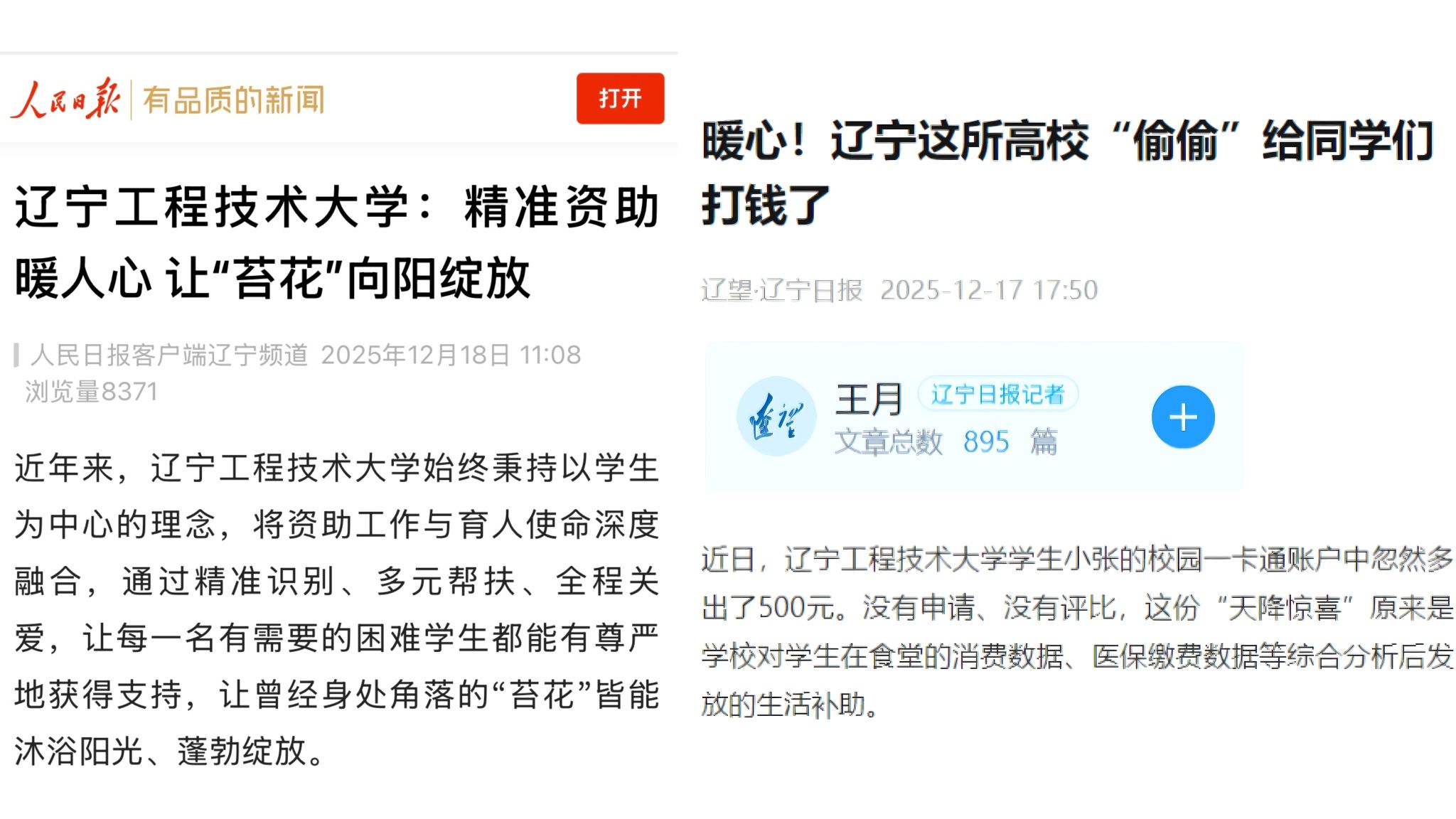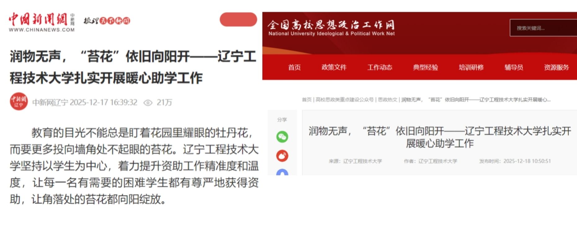 连日来,《人民日报》客户端、辽望·辽宁日报、中国新闻网、全国高校思想政治工作网等多家主流媒体集中报道我校学生资助工作典型经验。