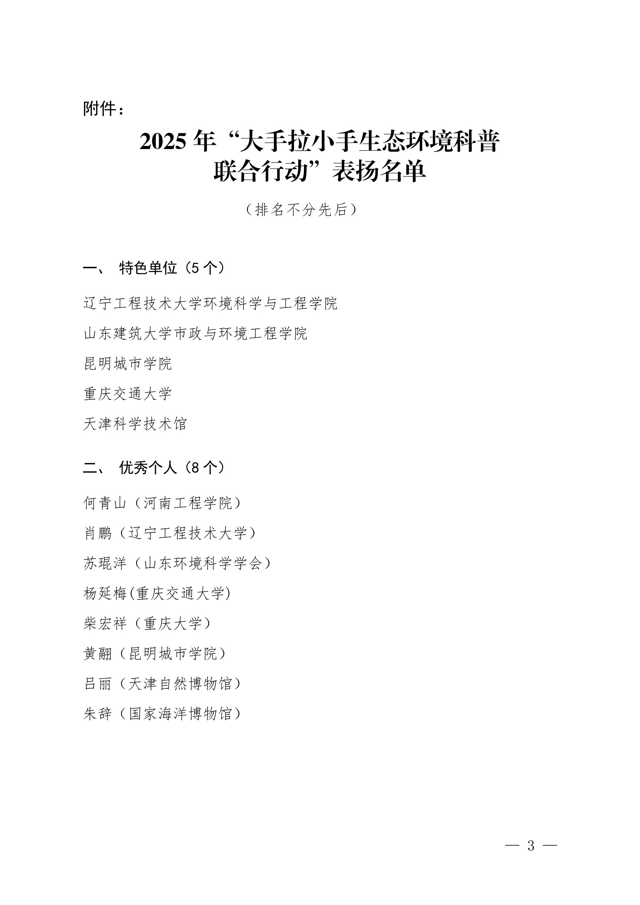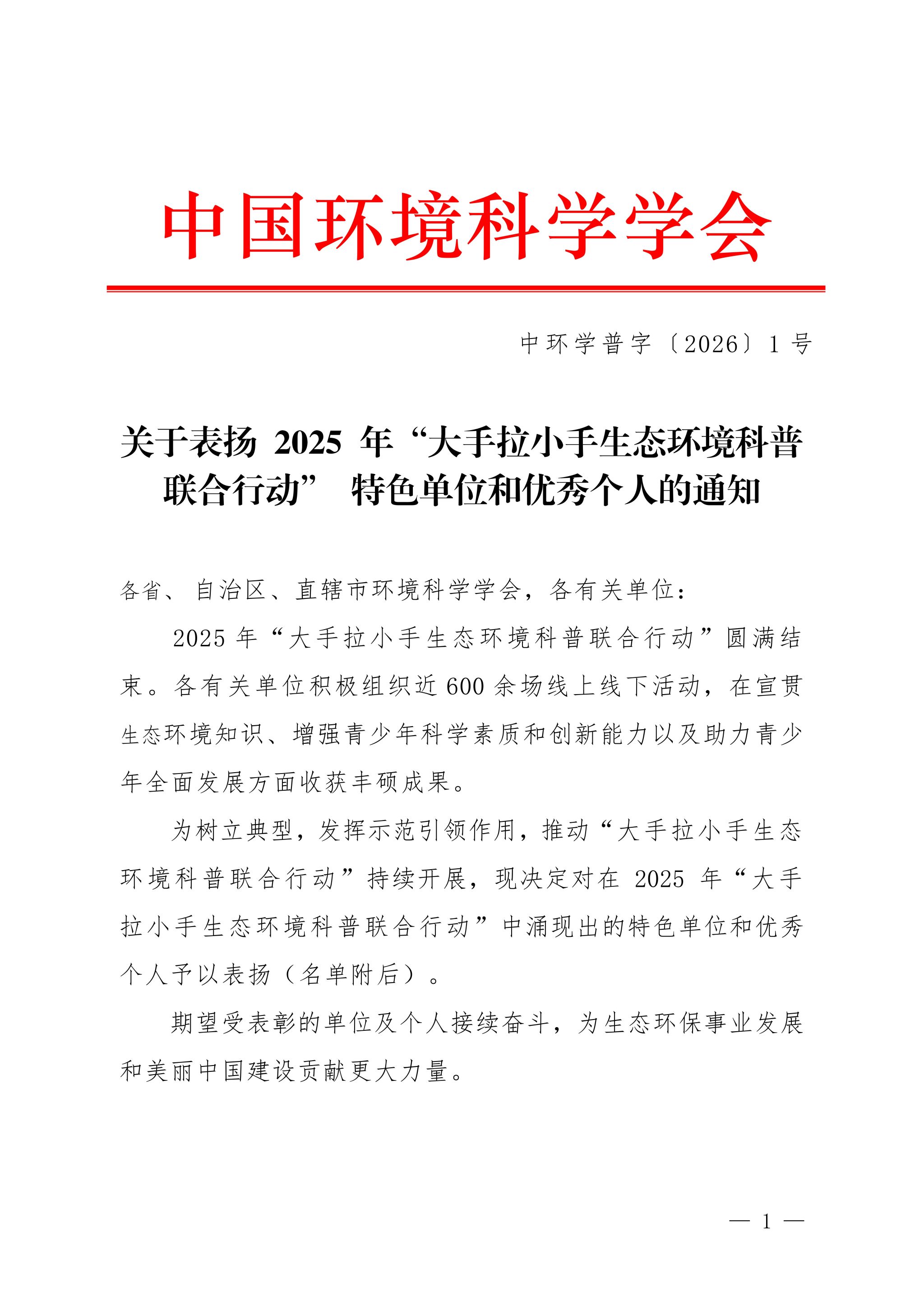 1月15日,中国环境科学学会印发《关于表扬2025年“大手拉小手生态环境科普联合行动”特色单位和优秀个人的通知》,辽宁工程技术大学环境科学与工程学院获评特色单位称号,该称号全国仅评选5家;学院肖鹏老师荣获优秀个人表彰,全国仅8人入选。双重荣誉彰显了学校在青少年生态环保科普教育领域的示范引领地位。