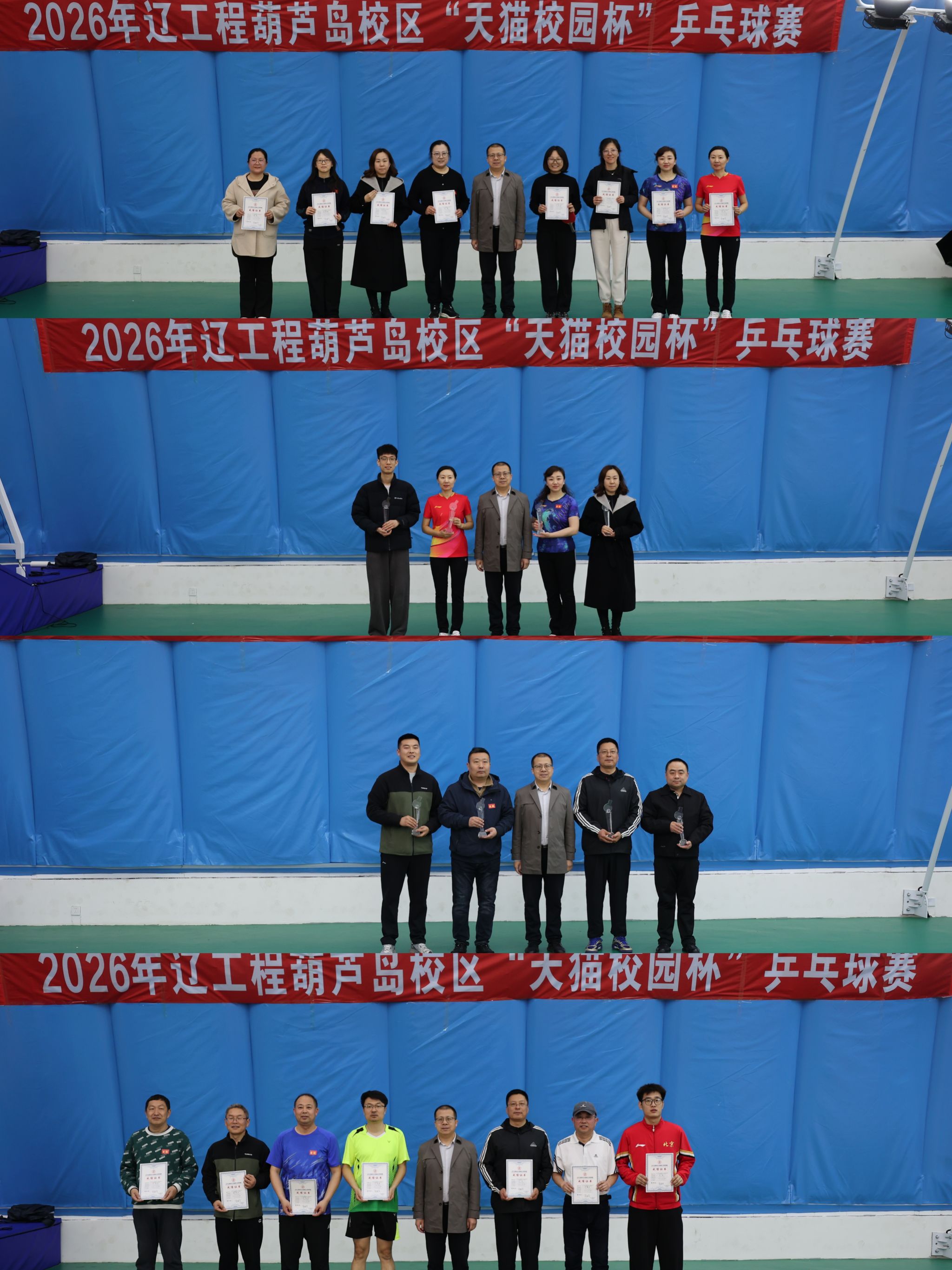 为丰富教职工业余文化生活,增强教职工身体素质,4月8日-9日,2026年辽宁工程技术大学葫芦岛校区“天猫校园杯”教职工乒乓球比赛在校区气膜馆顺利举办。本次赛事由校工会主办,海尔斯乒乓球俱乐部承办,天猫校园赞助,校区各基层分工会积极组队参赛,共计123名教师踊跃参与。